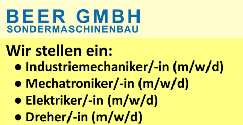 Sollten sie Interesse an einer der ausgeschriebenen Stellen haben senden sie bitte ihre aussagekräftigen Bewerbungsunterlagen per E-Mail an bewerbung@beergmbh.de